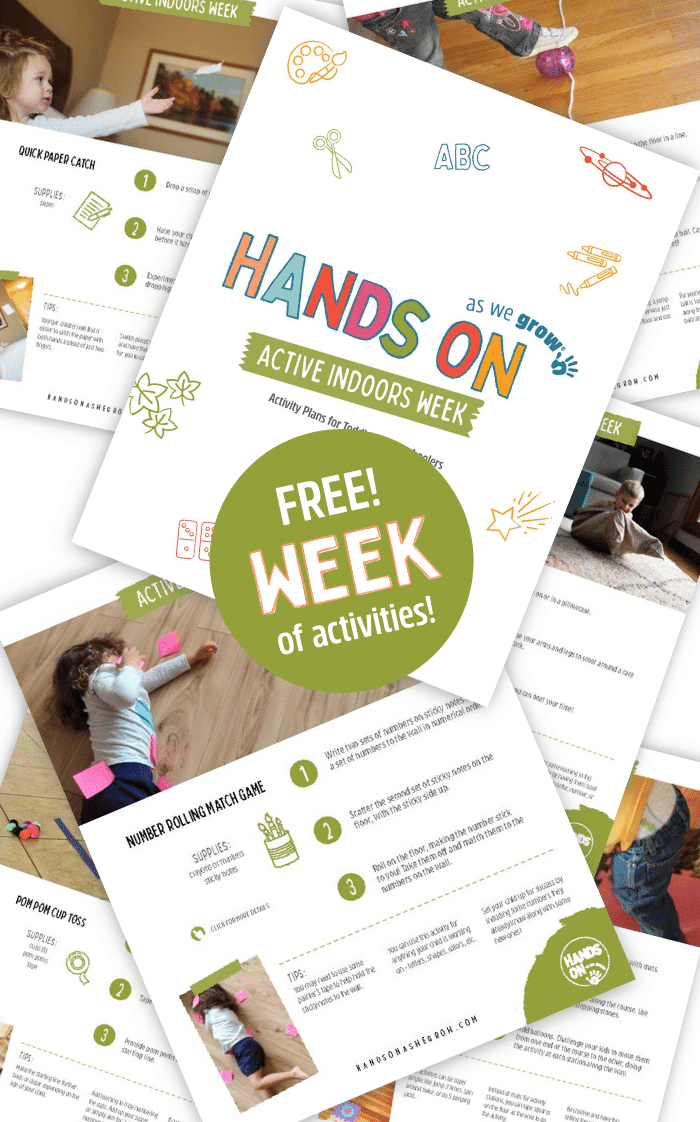 Because we value movement so much here at Hands On As We Grow, we have created full week of indoor gross motor activities to help your child get the wiggles out when you can't get outside (by the way, you can also take these outside)!