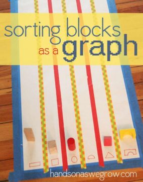 We've sorted blocks as a shape activity in the past. But it was pretty 'informal'. Not that this is really that structured of an activity, this one just has a place to put each shape of the blocks! To create the 'graph' to sort shapes on, I taped a large piece of paper to my floor with painter's tape. I used our butcher/art paper (affiliate link) I drew on the shapes of the ...